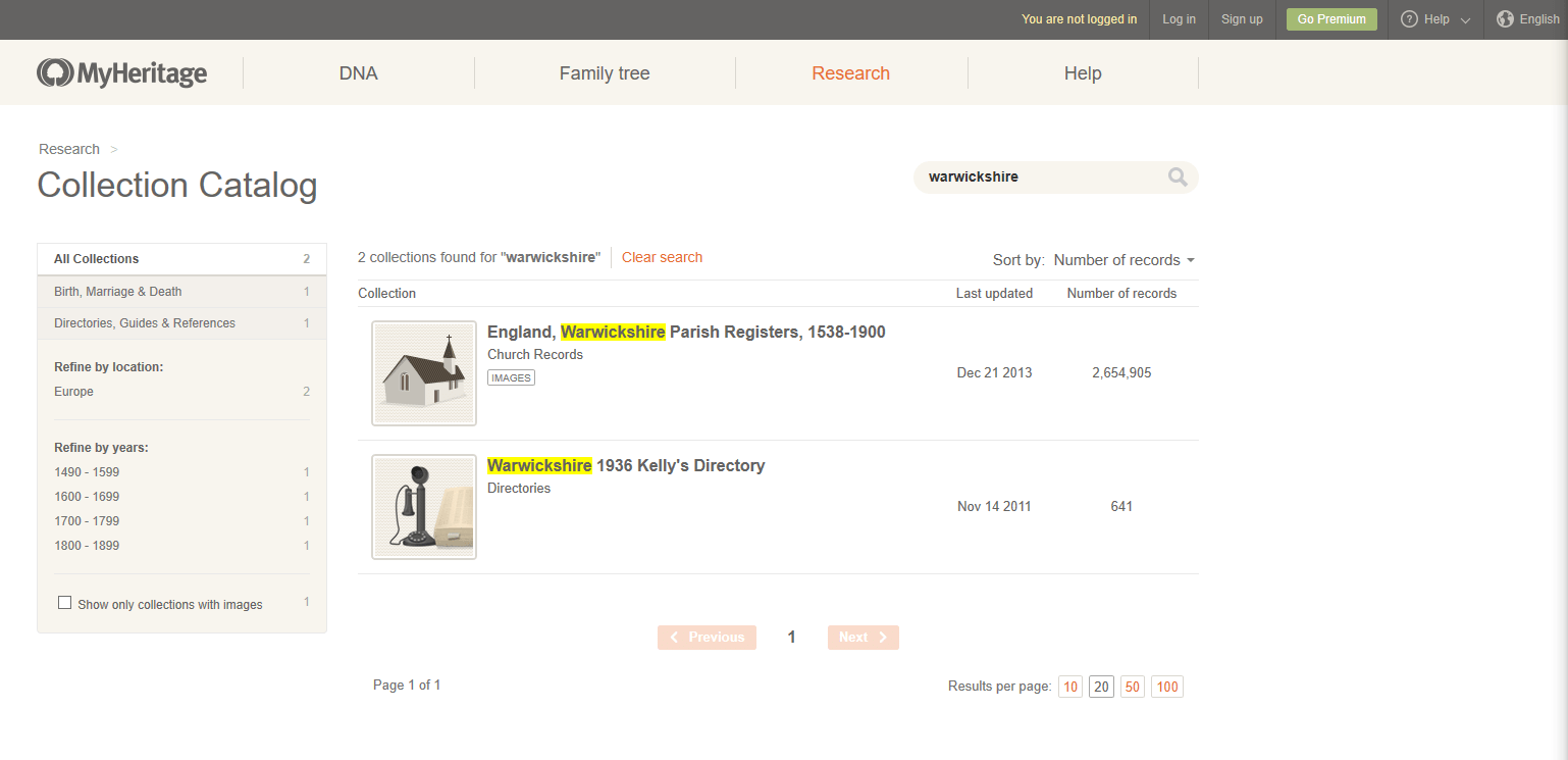 - You now have a list of collections that contain baptism, marriage, and burial records for that county, including how many records are in the collection.