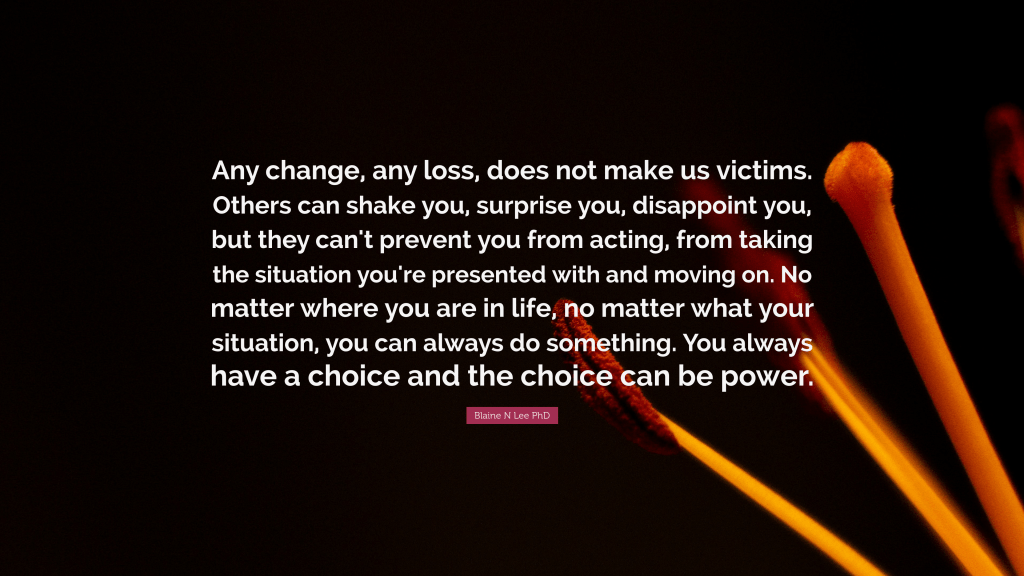 We can always choose our actions. The ability to choose gives us power. Two people in apparently identical situations can have completely different attitudes to the position they find themselves in. Put simply, I suppose, it is the difference between looking at your glass and seeing it as half-full rather than half-empty. We can choose to be grateful. We can choose to be happy. I am reminded of a story that Corrie ten Boom told of a time when she was a prisoner in a concentration camp, and how she learned to be grateful for the fleas in the dorm area. Because of the fleas the guards would not enter the area, so she had the opportunity to study the Bible with her family without fear of interruption.