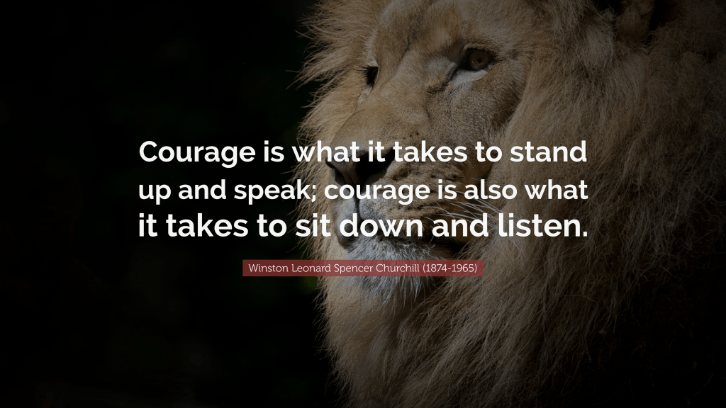 Courage takes many forms, but many times it emerges in ways we do not easily recognize. Courage to stand up and speak is a form we easily identify, but to sit down and listen? It all depends on the situation, of course, and what is courageous to one person may not be courageous to another. So reflect before you judge another: the same action that can be viewed as bravery or audacity in one situation, and foolhardy and careless in another.