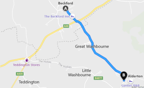 And for the purists, Beckford is in Worcestershire, but Geocoding places it in Gloucestershire. Also, Teddington and Toddington are separate places, while Beckford, Alderton and Teddington are about 3 miles away from each other, and form a rough equilateral triangle on the map.